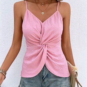 2/$40 Pink Twist Front Tank Top Summer Sleeveless Cami Casual Beach Blouse