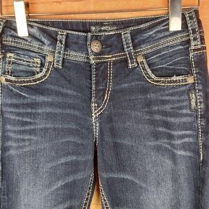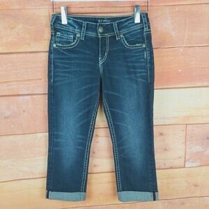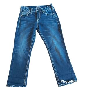 📣2/40$📣 SILVER Suki fluid denim stretch Mid Capri jeans size 27