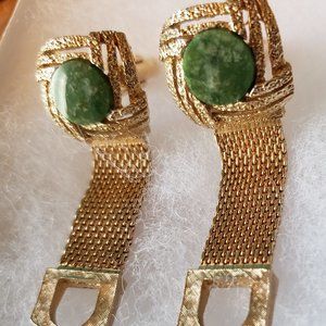 Gorgeous vintage gold tone, green stones cufflinks.