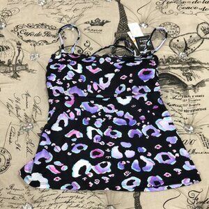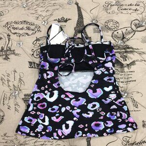 A fierce animal print pairs perfectly with a sleek bandeau neckline and playful ruffles on this stylish tankini top by Salt + Cove.