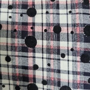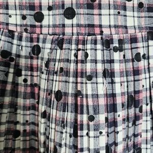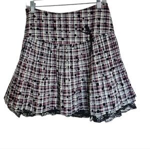 Pink white black plaid lace trim pleated lightweight handmaed skirt. ( have some silver threads ), lined, ziper on the side.
