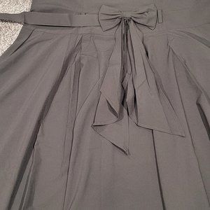 This gorgeous dress has a very unique design. It is made with a soft chiffon type fabric and fits like a glove! Great party dress for any occasions! It features a wide heart cut neckline. The full skirt can be worn with or without a petticoat. It has a ribbon belt with a bow-knot at the back. The belt loopholes line up with the princess seams at the front. Beautiful ruffles at the neckline and the bottom of the skirt. Approximately 38" long. Tag size 26.