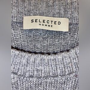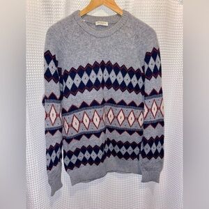 2/49$ Men’s SELECTED Fair Isle Raglan-Sleeve wool blend grey Sweater Sz Large