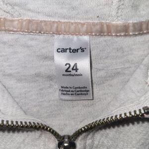 Cute floral zip-up in GUC. Material is like a french terry, IMO. Size 24 months.