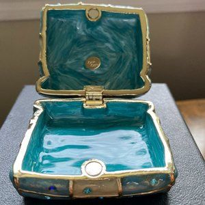Each Keren Kopal item is painted by hand using a unique technique that combines a distinctive enamel technique inlaid with Austrian and Swarovski crystals. Each crystal is handpicked and artistically placed on each piece. Every trinket box has a magnetic fastener