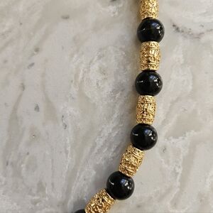 Stretch necklace with 24kt Gold Plated beads and pendant.