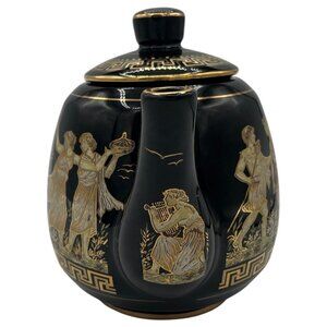 24kt Gold Kratimenos Teapot Black Made In Greece 7” Tall