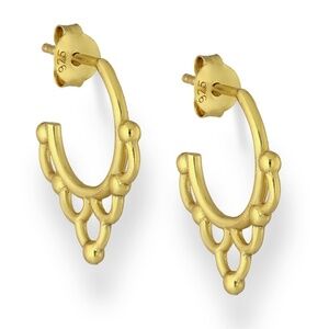 24kt Plated Sterling Silver Bali Ornate Hoop Earrings