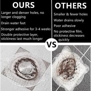 FEATURES: Our update disposable hair catcher can effectively solve floor drain and stick problems, compared with a normal hair catcher. The new hair catcher has a 0.55mm hole, it can effectively catch the hair and drain water faster at the same time
