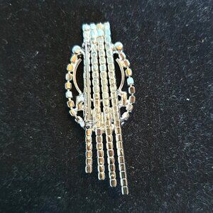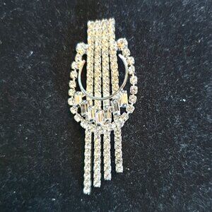 Make a dazzling statement with this extraordinary vintage Art Deco brooch, masterfully designed to evoke the brilliance and motion of a celestial comet streaking across the night sky. Crafted with shimmering white rhinestones in both round and baguette cuts, this silver-tone piece glows with radiant energy and timeless elegance.