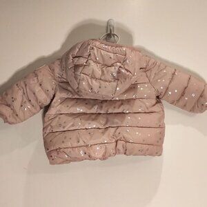 🍒2/50🍒NWOT Baby Gap Puffer Jacket 0-6 Months Salmon Pink Metallic Silver Stars