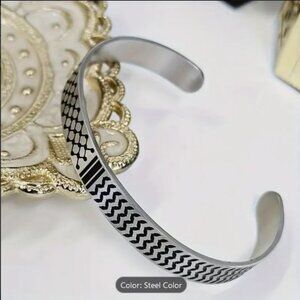 Brand New Elegant Geometric, Abstract Pattern Adjustable Stainless Steel Cuff Bracelet