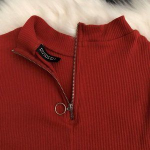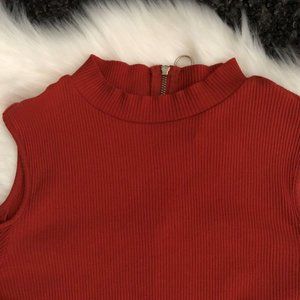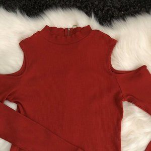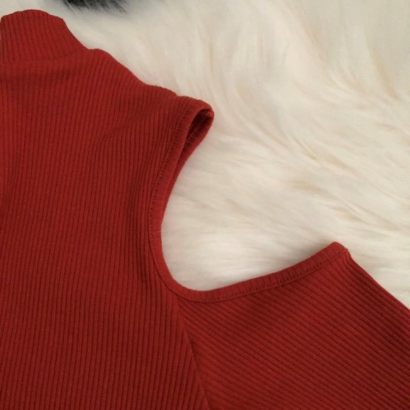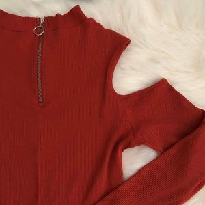 Like New - H&M Divided Red Ribbed Mock Neck Cold Shoulder Cropped Long Sleeve Sweater