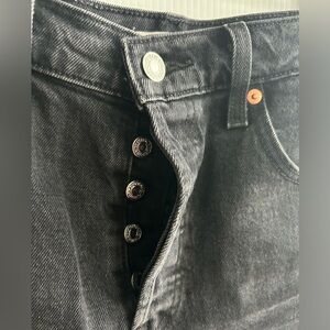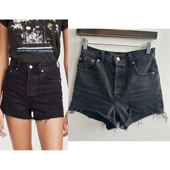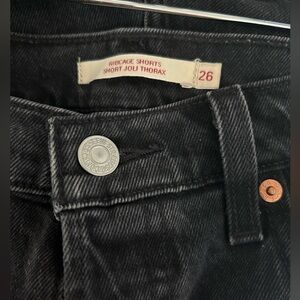 LEVI’S Black Ribcage Shorts. Super high waist, button front. Size 26.