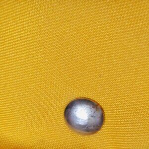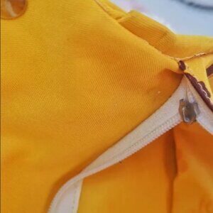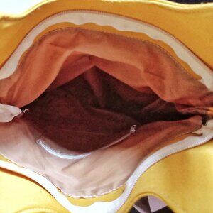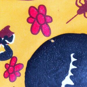 Condition: Print has slight fading, some wear on silver hardware, black marks on back, sides, and bottom, broken zippers