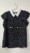 Elegant black top with floral accents. Features a crisp white collar. Call out: There’s a sewed little ripped on the right side. (Check photos for details).