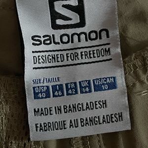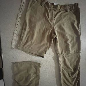 Activedry convertible pants with zip off legs by Salomon. The ankle open and have a zippers as well. These pants have 4 very Henry pockets and one back pocket is a velcro closure and the other is zippered. Very lightweight with a bit of elastic on the waist band.