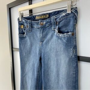 [27] Vintage Second Brand Low-Rise Flare Leg Distressed Ombre Blue Denim Jean