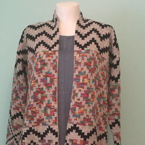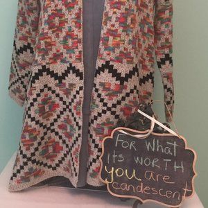 This Dreamers multi colour geometrical granny design cardigan is in excellent condition. Throw over open face 3/4 cardigan is bohemian beautiful an versatile. A great addition to your closet. 4 season wearability.