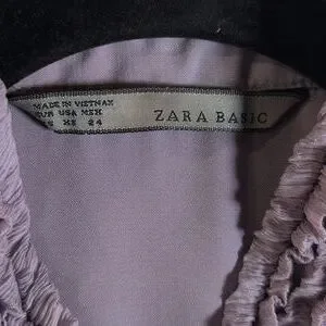 Chic Zara dress with ruffled details. Soft lavender hue.