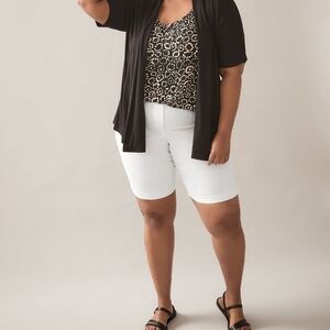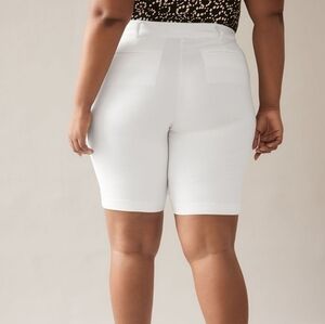 Make your work wear stylish with this plus-size bermuda short! Made from a stretchy soft fabric blend.