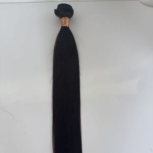 100% human hair weft extensions – 28” long, natural black (#1B), straight texture.