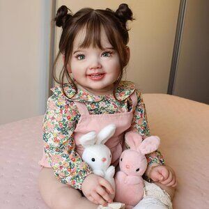 π28Inches Long Brown Hair Reborn Princess Girl Doll Smiling with Teeth