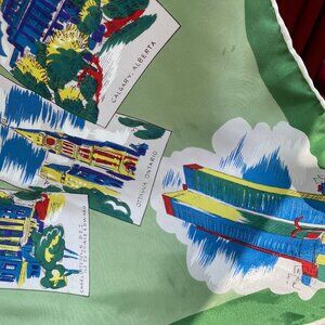 This vintage 1967 centennial souvenir scarf is an excellent gift for the collector and fashionista alike. Adorn with a pictorial storyboard of iconic Canada, this piece can be displayed or worn to adorn.