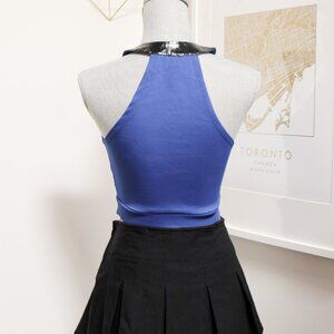 2B BEBE Sapphire Blue Cyber Goth Halter Crop Top