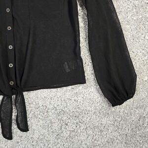 2B BeBe Shirt Womens Small Black Button Up Tie Sheer Lace Y2K Witchy Gothic