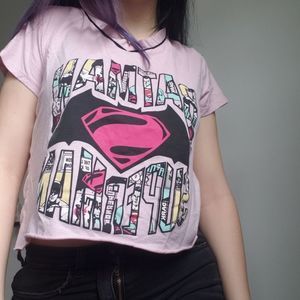✨2FOR15$✨Pink Batman Superman Crop Top