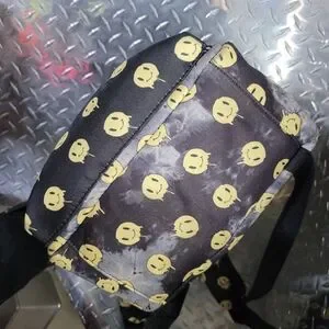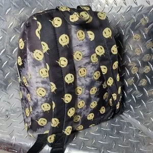 This stylish backpack features a playful smiley face design in black and yellow. Perfect for adding a touch of fun to your everyday look. same vein as China Town Market. brand new