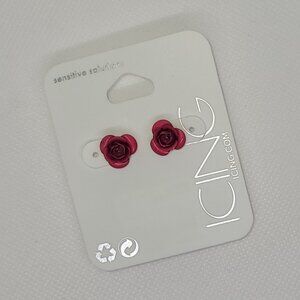 Brand New 💎 With Packaging ♥︎ICING | Claire's 1) Burgundy Rose Stud Earrings 2) Pink Rose Stud Earrings