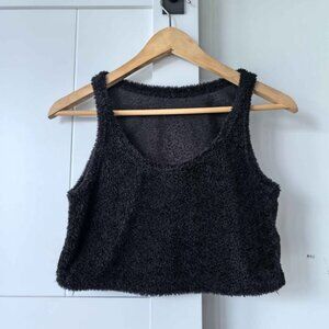 Super soft fleece loungewear set — includes a cropped tank top and matching high-waisted pants with pockets.