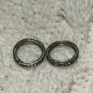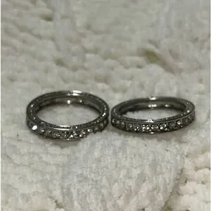 2 Stainless Steel Rhinestone Band Rings. Both size 11. Rhinestones on the outside/ sides of bands. Super cute and perfect for everyday wear 🩶💎