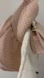 Pretty soft knit faint gold sparkle cable knit sweater with intricate knit design. Paired with a chic pink tweed skirt and matching purse with pearl handle. Little skirt has elastic waist.