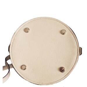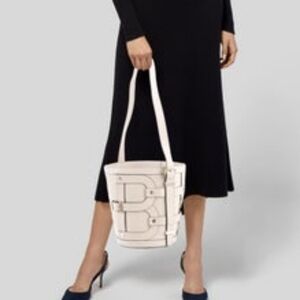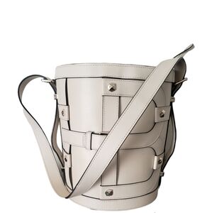 Cream leather Henri Bendel Harness Bucket Bag with light gold-tone hardware.