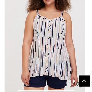 🆕2X NAVY & BRUSH STROKES STRETCH FIT & FLARE CAMI