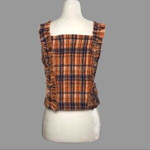 Ruffled Plaid Tank in Orange Motif