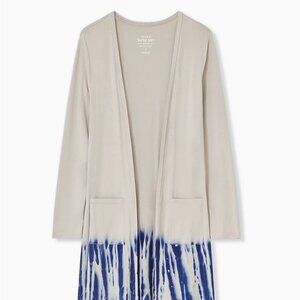 This Super Soft cardigan is fantastically updated with a tie-dye dipped hem on a longline silhouette.