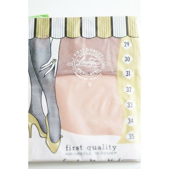 2X Vintage Super Fine Beige 400 Needle Seam Free Nylon Stockings 8.5, 9