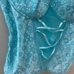 [2X]Delta Burke Elegant Lace Corset Basques Bustier in Torquase Sheer