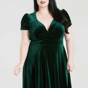 The Joanne Dress from Hell Bunny in lush, green velvet is a holiday party must have!