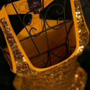 2b bebe yellow mustard / orange sequin tank top - size XS