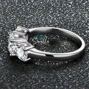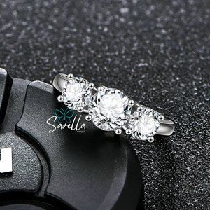 2ct Trilogy Ring 3 Stone Moissanite Band Solid Sterling Silver