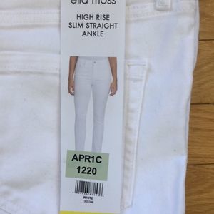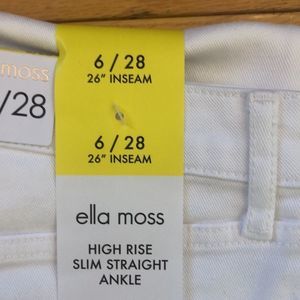 🔴 2 for $25 Ella Moss Ladies' High Rise Slim Straight Ankle Jeans, White size 6