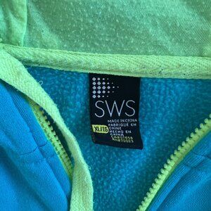 (2for$10) Urban Planet SWS Blue Zip-Up Hoodie with Neon Green Yellow Accent