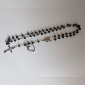 - 1pc black bead Rosary necklace with a cross