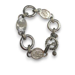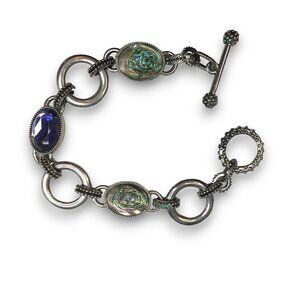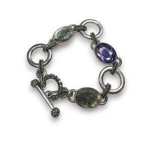 2 pc Silver tone Ornate Lia Sophia Epiphany Abalone Purple Rhinestone Toggle Clasp Bracelet and a Lia Sophia Silver Tone Snake Chain Necklace