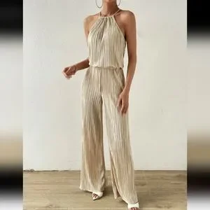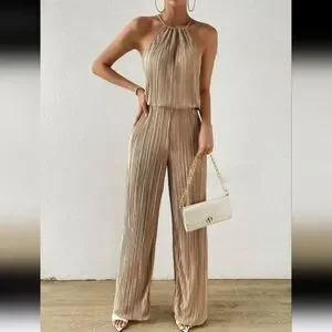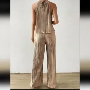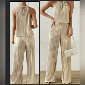 2pc Privé Solid Halter Top & Wide Leg Pants
